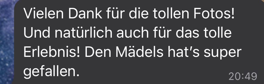 Hierfür bitte einfach am besten per Whatsapp melden, unter der 0151 59134141 bei Christiane.